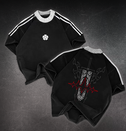À l’occasion d’une collaboration Adidas,  t-shirt oversize Demon Slayer / Black Clover / Solo Leveling floquée sur le devant et sur le derriere en fonction de votre personnage sélectionner.
